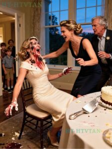 The impact came without warning. The cake hit my face with brutal force. My chair tipped backward. The corner of the dining table struck the back of my skull with a sharp crack that echoed through the room. Pain exploded across my head. My fingers came away sticky with frosting and warm with b.l.o.o.d. Vanessa’s laughter pierced the air above the shocked murmurs of the others. “Oh my gosh! You should see your face!” she repeated, this time louder, reveling in the chaos she had created.