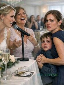 The ballroom glowed with gold light, reflections bouncing off polished marble floors and champagne towers stacked like monuments to excess. A live quartet played something classical and soft, the kind of music meant to signal refinement. Every table was filled with people who mattered in this city—partners at law firms, executives with tailored smiles, politicians’ wives who spoke in careful half-sentences. And there I stood, in the open space between tables, my nine-year-old son Jude gripping my hand so tightly his knuckles had gone pale, while my sister and mother laughed into a microphone about my life.