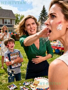 My name is Elaine Murray. I’m 36, a single mom, doing everything I can to protect my 9-year-old son, Finn. Nothing in my life could have prepared me for the betrayal that unfolded at my niece’s 8th birthday party, a betrayal that left my heart racing and my blood boiling. I can still see it clearly: Finn’s small, bruised face, his shirt smeared with cake frosting, his prized baseball cards ripped apart and scattered across the grass. He was trembling, clutching his backpack like it was the only shield between him and the world.
