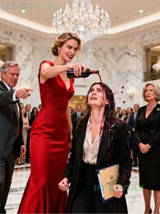 “Oops,” Bianca smirked, feigning innocence. “My hand slipped. But hey, don’t worry. That wine is worth more than your entire outfit. Consider it an upgrade.”