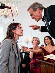 I stood there, tasting the bitterness of the wine and the humiliation. They turned their backs on me, continuing to laugh, leaving me soaked in the middle of the opulent hall.