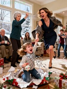Before I could respond, Mom bent down toward Maya, gathering a handful of shiny torn wrapping paper from the floor. Her movements were almost playful—almost. “Here,” she said, voice dripping with false sweetness. “You want presents, don’t you? Let’s wrap you up instead.”