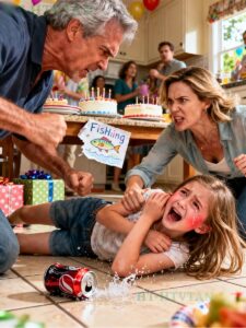 My 9-year-old daughter went to my father’s 60th birthday party excited, proud, and holding a handmade card she had spent two evenings drawing at our kitchen table, but less than three hours later I would walk into that same house and find her lying on the kitchen floor with a red mark spreading across her cheek while my father stood over her like he had just finished correcting a problem.