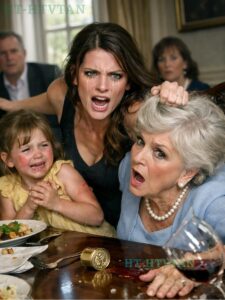 At a family gathering, my mother-in-law hit my six-year-old daughter because she ate the last cutlet. You little brat. You’re as selfish as your mother. She snapped. As if that weren’t enough, she jammed her fingers in my daughter’s mouth, pulled them out, and threw the food in her face, hissing, “Next time, you’d better not dare.” The whole family laughed. I couldn’t hold back any longer. I grabbed the old woman by the hair and leaned in, saying something that silenced the room…
