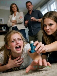 Behind her, my parents stood in the doorway. My mother’s arms were crossed, her posture stiff and immaculate even in the chaos of the moment. My father hovered slightly behind her shoulder, his weight shifting from foot to foot like he wanted to be anywhere else. Neither of them moved. No one knelt down. No one reached for the inhaler. No one told Vivien to stop. That was the moment it became clear to me that you can be suffocating in front of the people who raised you, and they’ll still accuse you of being dramatic for needing air.