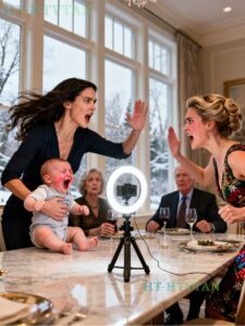 “You were letting him ruin everything! This dinner, this—” she waved toward her camera equipment, the set lights, the table—“this whole night. I’ve been planning this for weeks, Natalie. Weeks! You could have stepped in, you could have calmed him down, but you just sat there acting like it was fine for everyone to listen to that noise!”