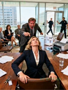 I’d file everything. Every unauthorized entry, every late night office visit, every expense report that smelled like tequila and bad decisions. I would document his entire existence until I had enough paper to bury him alive. walked back into the boardroom, set the glass down on a coaster in front of him, and watched him ignore me completely as he continued to shout at his team.