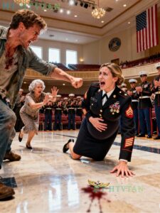 He moved with the clumsy, terrifying momentum of a falling boulder. Before the nearest Marine could intervene, Kyle had scrambled onto the stage. He didn’t aim for my face. He didn’t aim for the new insignia on my collar.