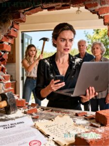Hundreds of viewers flooded the comments praising her courage for “modernizing” an outdated bakery, and she laughed as she described knocking down interior brick to “open the energy,” unaware that each swing of that hammer had triggered automatic alerts from the heritage oversight board once the demolition noise complaint was filed by a neighboring tenant.