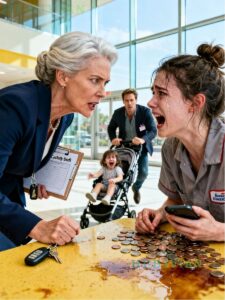 When I saw her, I thought my eyes were playing tricks on me. The hum of the mall around me faded into a blur—the clatter of trays, the laughter of teenagers, the faint echo of Christmas music piped through old speakers—and all I could see was my daughter, sitting alone at a sticky food court table, head bowed over a handful of coins.