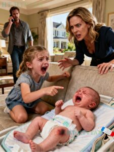 In that instant, the color drained from his face. “This is unmistakable,” Tom muttered in a low voice. “Someone did this to this child.” “Daddy, mommy, what’s happening?” Sophia was confused by her parents’ strange atmosphere. “Is baby Lily hurt?” Tom quickly took his daughter’s hand and said in a gentle but firm voice, “Sophia, you noticed something very important.