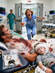 She pushed past the sliding doors, flashing her staff badge out of habit, her eyes scanning faces, stretchers, monitors, until she saw a familiar figure standing near the nurses’ station, his posture stiff, his expression guarded.