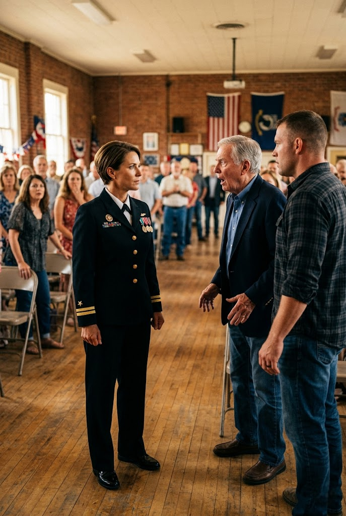 Not the cruelty that came a moment later. Not the insult that cracked across the polished floor and made a room full of retirees, church women, and old servicemen go stiff in their folding chairs. Not even the way he used another man’s uniform to diminish me, the way he had always used symbols of service like they belonged only to men who looked and sounded the way he thought honor should look and sound.