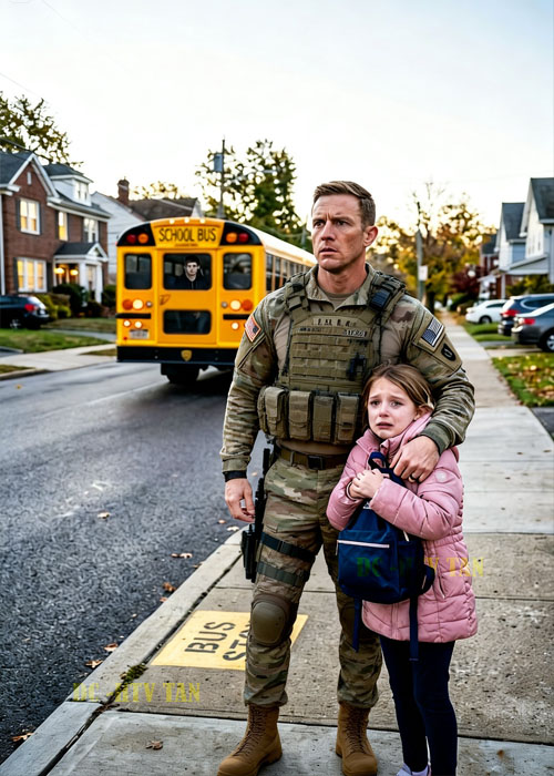 Former Marine Noah Hart thought he was just finishing a morning run—until he saw a tiny girl in a pink coat trembling at a bus stop, too frightened to speak and too ashamed to cry. When she whispers, “I don’t want to get on,” something in him snaps to attention. What he uncovers inside one quiet American school shocks the entire town: a grieving child terrorized in plain sight, adults looking away, and one school bus ride that had become a battlefield. This is a powerful story about courage, silence, and the moment one man decided not to walk away.