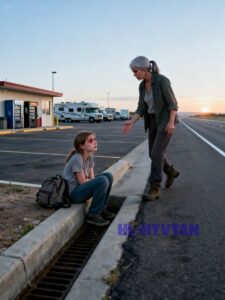 She looked to be around fifty, with gray hair pulled into a ponytail and kind eyes that immediately noticed me sitting alone on the curb.
