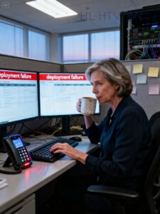 At 5:37 a.m., Jennifer was already awake, mug in hand, staring at the glowing red deployment failure banner on her personal dashboard like it was a sunrise she’d seen too many times.