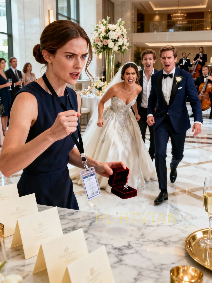 At my dad’s second wedding, someone slipped a lanyard over my neck like I belonged to the catering crew. The tag said Housekeeper in bold letters. His new wife glanced at it and smiled in that slow, satisfied way, then leaned close enough for me to smell her perfume as she murmured, You’re just staff—no chair, no plate, no place. My brother laughed under his breath and added, Food is for family. I felt the room tilt, the music turning into noise, the guests suddenly watching without looking. I slid the family ring off my finger, set it in my palm, and said quietly, Then I’m not your family anymore. The smile on her face cracked, my brother’s grin vanished, and my father’s eyes finally found mine. Their faces fell… but that was only the start.