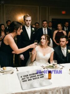 At my sister’s wedding, I sat down and found a warning note under my napkin. “If your husband goes to smoke alone, hide and watch him.” I thought it was ridiculous, but the moment I peeked, I trembled and couldn’t make a sound…