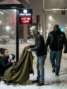 She glanced at my hoodie, my torn jeans, the way my body trembled even with the blanket still on my arms.