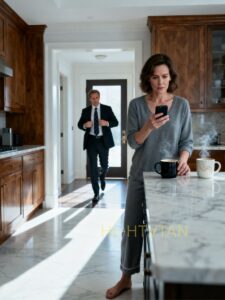 She had just set down two mugs of coffee—one black, one with oat milk—exactly how her husband liked it, because habit is what you do when you still believe in partnership.