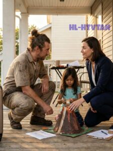 Arin looked at his porch—taped volcano, scattered papers, Sana’s shoes by the door, the faint sound of cartoons from inside.
