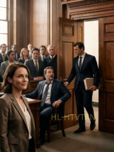 A tall man in a navy suit walked in, followed by two attorneys carrying thick folders that looked heavy enough to bend their arms.
