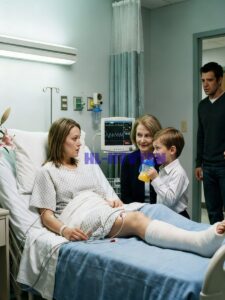 I lay propped up on a pile of stiff hospital pillows, my left leg immobilized in layers of hard support, my torso wrapped tight enough that even a shallow breath tugged at the tender places.
