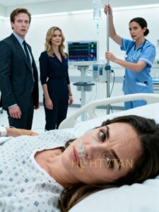 Her hair fell in glossy waves over one shoulder, her lipstick fresh, her expression serene in a way that didn’t belong in a hospital room.