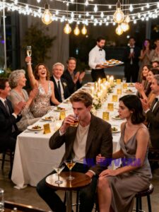 “We’re not even on the guest list,” she said with a smile. “Try the bride.” And in that moment, the waiter’s eyes flicked from me to her and back again, registering the absurdity of it all. He gave a quick nod and walked away, leaving me stunned, my hand still hovering where the check had been. I looked at Emily. She just raised her eyebrows and took another sip of her drink.