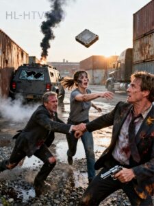 “Stay down, Sarah!” he shouted, voice jagged, stripped of everything refined.