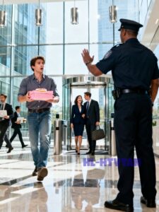 The glass doors behind the guard slid open with that smooth automatic whoosh sound expensive buildings love so much.