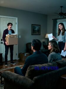 The living room smelled faintly of cinnamon and pine from the air freshener my mom insisted on keeping in every corner of the house. But it wasn’t the cozy scent of home that hit me first—it was the icy weight of betrayal, the kind that makes your chest tighten and your stomach drop so fast it feels like gravity just gave up on you. Boxes were stacked in neat, mocking rows along the walls, my clothes folded—or in some cases tossed—into cardboard containers, my textbooks staring at me like silent witnesses to the absurdity unfolding.