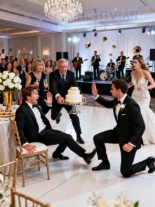 Two hundred guests froze in place, mouths half-open, hands half-raised, the entire room trapped in the awful pause where no one wants to be the first to admit what just happened.