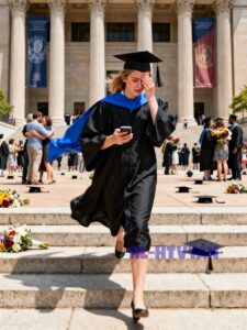 By 9:45, I was standing outside the auditorium wearing my graduation regalia, the heavy fabric of the gown brushing against my legs while my phone pressed against my ear.