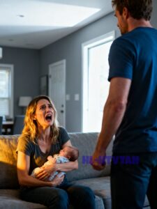 Then our daughter starts crying from her bassinet across the room. The sound cuts through everything. Blake stops mid-motion, his hands still extended toward me. He looks at the screaming baby, then at his own hands, then at me. Something shifts in his eyes. He sees what he looks like right now. Almost getting physical with his wife while their infant daughter screams in the background.