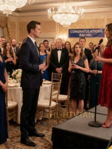 Rachel was across the room, radiant in a red dress that fit her like it had been designed to make people look twice.