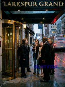 The brass handles gleamed under the canopy lights, the doorman’s uniform was crisp enough to slice paper, and the valet line was stacked with black SUVs that looked like they cost more than most houses.