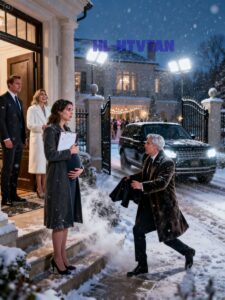 A blast of snow and wind surged into the foyer, and the cold hit my face instantly, wet and sharp, soaking the thin coat I’d been wearing like it was paper.