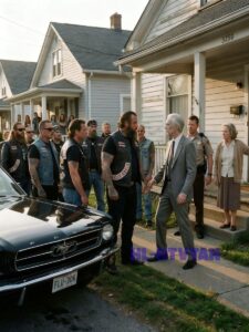 The deputy shifted uncomfortably. His eyes flicked to Iron’s vest. Then to the motorcycles still parked along the curb. Then back to the suit. The deputy looked like a man who suddenly wished he’d called in sick.