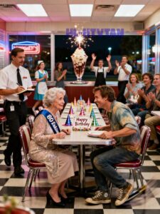 The diner became something else—not a stage for pity, but a place where an old woman’s presence mattered.