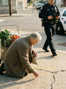 The old woman who got fined for selling vegetables stood on the corner of West Pine Street just after sunrise, in that thin slice of morning when the city still feels like it’s holding its breath.