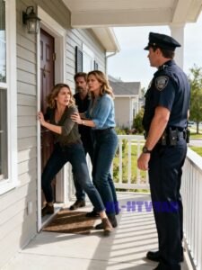 When the officer arrived, he looked exactly like someone who expected a minor family dispute. His expression was neutral, bordering on bored, as he stepped out of the car and walked up the path.