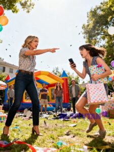 The hum of the bounce house motor seemed impossibly loud in the sudden silence that fell over the room. Conversations froze mid-sentence. A plastic fork hovered over a paper plate like time itself had stalled. A small child, oblivious to the tension, asked what I meant, earning a hasty shush from a parent nearby. Chelsea’s smile cracked, and I could see her teeth clenched as she searched for the right words. “Excuse me?” she said, her voice thin and brittle.
