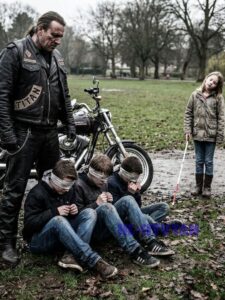 The biker’s eyes, cold and commanding, turned to the boys. “You took her eyes,” he said, his growl low and terrifying. “Now I’m taking yours.”
