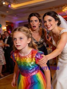 People were taking pictures and shouting nice things about how pretty Lily looked in her sparkly outfit. After the cake cutting, I took Lily to the venue’s prep room because she looked like she was about to fall apart. The second we got inside and closed the door, she burst into tears. Her whole body was shaking as she sobbed into my shirt.