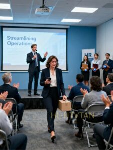HR stood off to the side wearing that tight-lipped smile they train for—polite, sympathetic, and completely empty.
