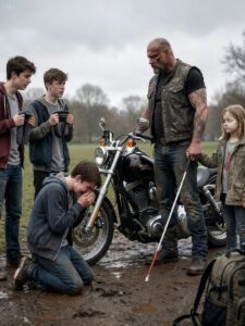 “They Humiliated the Blind Girl for a Laugh… Then a Scarred Biker Rolled In, Took Command, and One Name Made the Whole Park Go Silent”