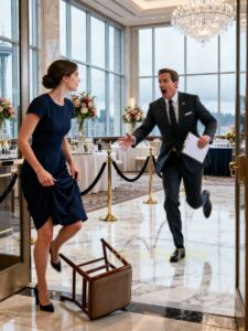 I stood at the Grandbridge lobby entrance—the exact spot where I’d been seated like an unwanted guest.