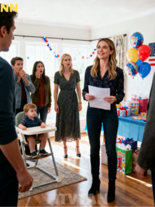 She didn’t greet me. She didn’t ask how I was holding up. She placed Lucas in his high chair near the cake table, tapped a spoon against her cup, and smiled like she’d just won something.