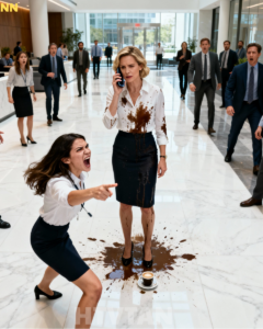 The coffee hit my chest like a small, angry wave—too hot, too sticky, too intentional. I felt it through the silk blazer before I even heard the cup clatter and roll across the marble floor. The smell was sharp and bitter, a roasted punch that instantly turned my surprise visit into a spectacle.